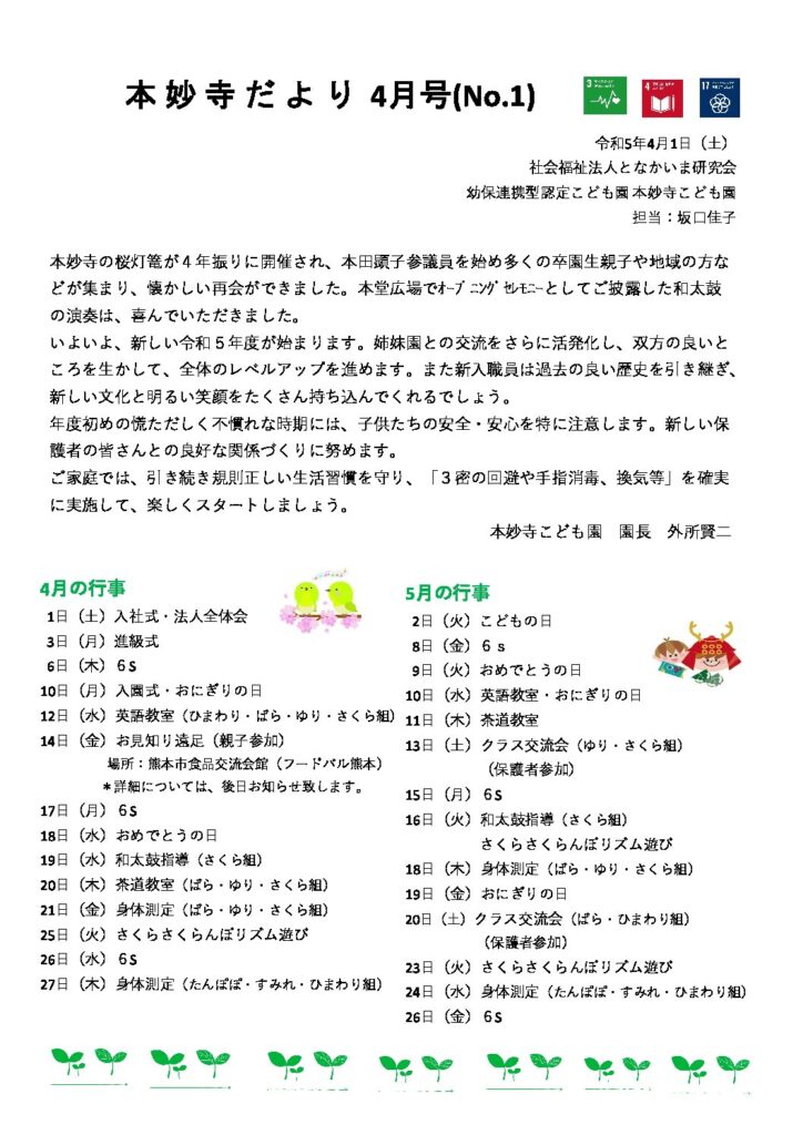 「本妙寺だより 4月号」を掲載しました。