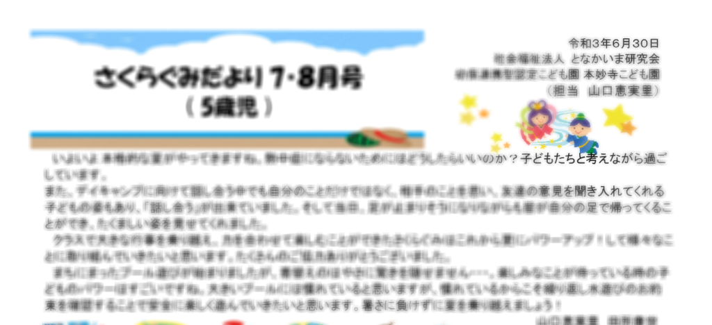社会福祉法人 となかいま研究会は、幼保連携型認定こども園 本妙寺こども園(熊本市)とあいあい保育園(合志市)を運営しています。